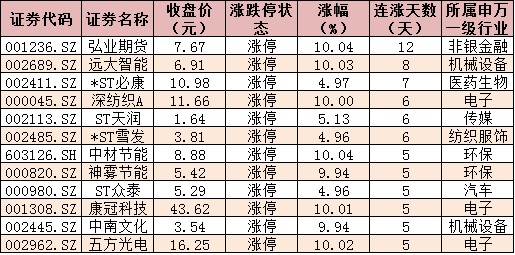 表:今日漲停且連漲5日以上的個股情況: