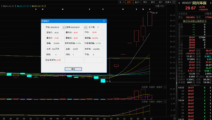 滬深交易所2022年9月27日公布的交易公開信息顯示,同興環(huán)保因連續(xù)三個交易日內(nèi),漲幅偏離值累計達(dá)20%而登上龍虎榜。