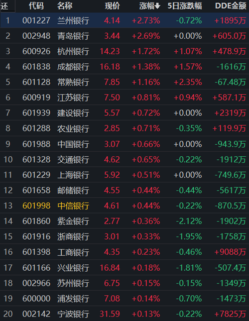 9月28日,申萬一級行業(yè)中銀行業(yè)領(lǐng)漲,微漲0.07%。行業(yè)42只交易中的個股,有20只上漲,占比47.62%,其中,2只個股漲幅超2%。