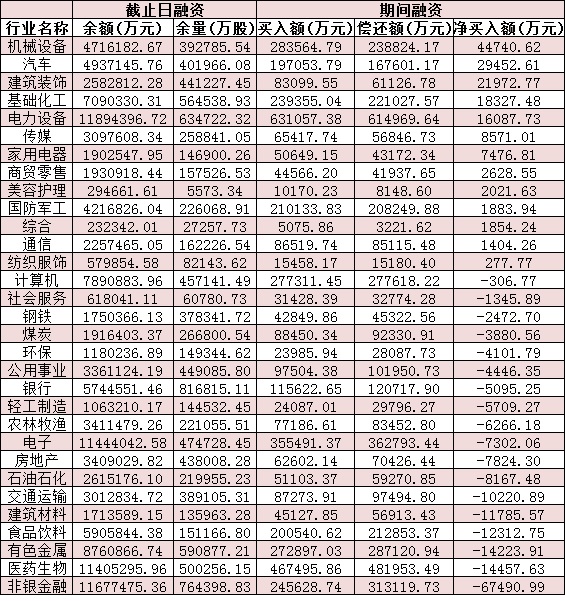 表:10月25日申萬一級行業(yè)兩融交易情況: