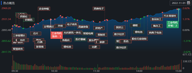截至11月1日收盤,上證指數漲2.62%,收報2967.20點,深證成指漲3.24%,收報10734.25點,創業板指漲3.20%,收報2337.65點;滬深兩市合計成交額9775.5億元;北向資金凈買入61.55億元;總體來看,A股中上漲個股4348只,下跌個股470只。