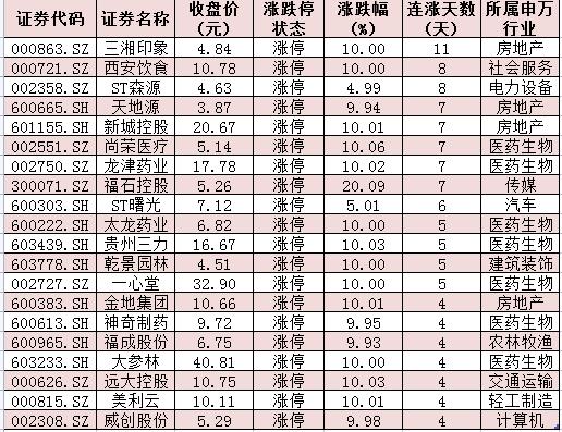 表:連續上漲4日且今日收盤漲停個股情況: