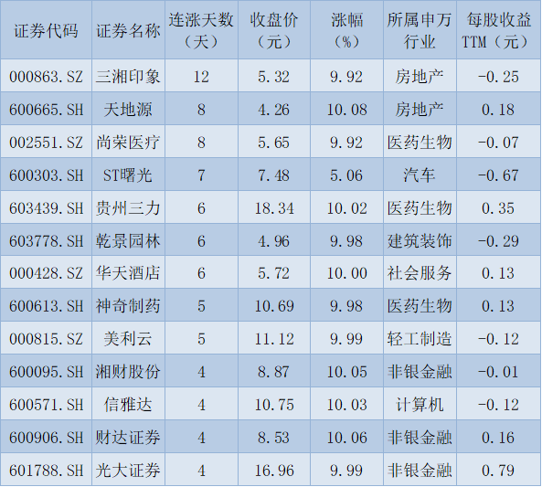 表:連續(xù)上漲4天且今日收盤漲停股一覽