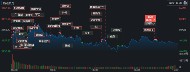 截至12月2日收盤,上證指數(shù)跌0.29%,收?qǐng)?bào)3156.14點(diǎn),深證成指跌0.39%,收?qǐng)?bào)11219.79點(diǎn),創(chuàng)業(yè)板指漲0.09%,收?qǐng)?bào)2383.32點(diǎn);滬深兩市合計(jì)成交額8645.3億元,較前一交易日增長(zhǎng)-18.31%;北向資金凈買入40.94億元;總體來(lái)看,A股中上漲個(gè)股為3012只,下跌個(gè)股1818只。