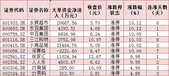 12月6日,在市場強勢震蕩中,熱點也在快速輪動。周一漲幅居前的建筑裝飾行業(yè),出現(xiàn)回落跌幅居首,醫(yī)藥股、金融股、地產股也有所休整。今日,商貿零售、食品飲料等消費類行業(yè)漲幅居前,分別為2.4%和2.33%,其中,商貿零售行業(yè)中,有10只概念股集體漲停,備受資金追捧。