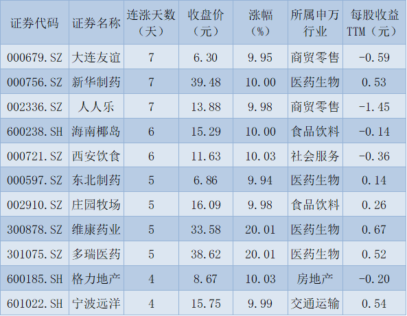 表:連續上漲4天且今日收盤漲停股一覽