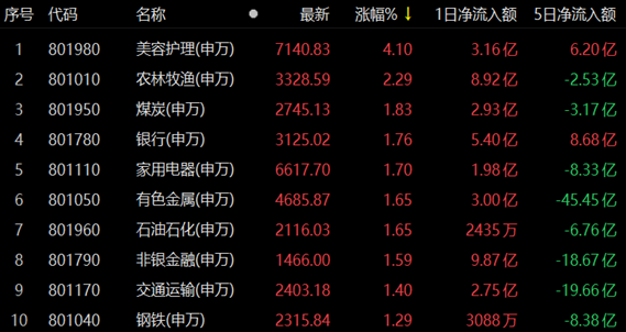 12月27日,行業(yè)板塊呈漲多跌少格局。從31類申萬一級行業(yè)看,有28類行業(yè)上漲,3類行業(yè)下跌。漲幅方面,美容護(hù)理行業(yè)居首達(dá)4.10%,緊隨其后農(nóng)林牧漁漲幅也超2%。跌幅方面,醫(yī)藥生物居首,達(dá)0.50%,另外兩個(gè)下跌的行業(yè)分別是計(jì)算機(jī)和社會服務(wù)。