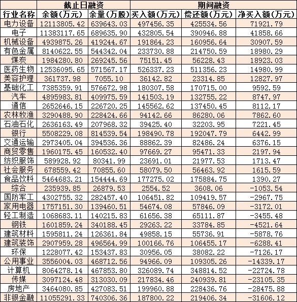 表:1月4日申萬一級行業兩融交易情況: