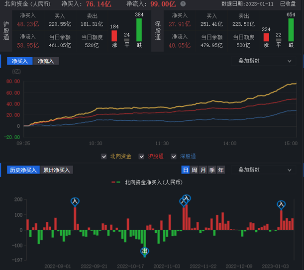 北向資金凈買入76.14億元
