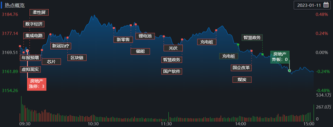 1月11日,A股三大指數收陰,創業板指下午開盤后持續回落,這是新年以來首次三大指數同時下跌。截至收盤,上證指數跌0.24%報3161.84點;深證成指跌0.59%報11439.44點,創業板指跌1.13%報2445.97點,A股合計成交額7418.45億元,較前一交易日縮減0.72%,北向資金凈買入76.14億元。總體上看,A股個股漲少跌多,有1037只上漲,3891只下跌。