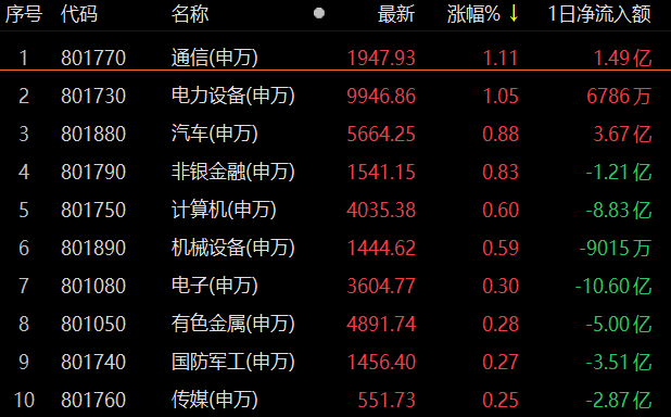 1月12日,行業(yè)板塊呈漲少跌多格局。從31類申萬一級行業(yè)看,有13類行業(yè)上漲,18類行業(yè)下跌。漲幅方面,通信行業(yè)居首達(dá)1.11%,大單資金凈買入1.49億元,此外,電力設(shè)備也漲幅過1%。跌幅方面,房地產(chǎn)行業(yè)居首,達(dá)1.78%,此外,美容護(hù)理、社會服務(wù)和商貿(mào)零售等3類行業(yè)跌幅均超1%。