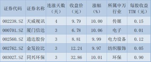 漲停股方面,今日有38只個股以漲停價報收,其中,有5只個股股價已連續上漲超過3個交易日;跌停方面,有10只個股以跌停價報收。從申萬一級行業看,電力設備行業漲停股數量居首,為6只,此外,食品飲料、輕工制造、汽車、非銀金融、紡織服飾、電子和傳媒行業漲停股數均為3只。