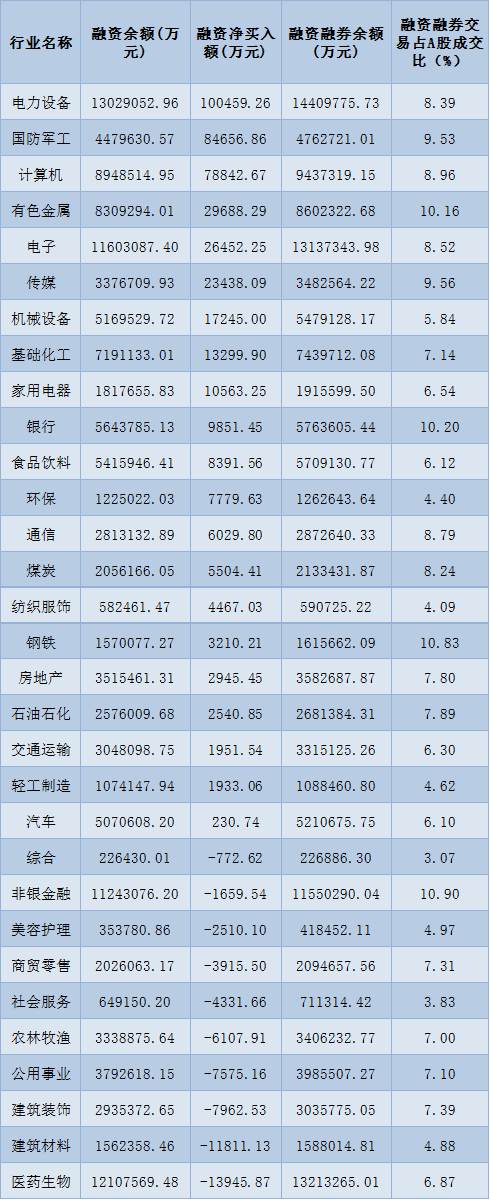 表:2月14日申萬一級行業兩融交易情況: