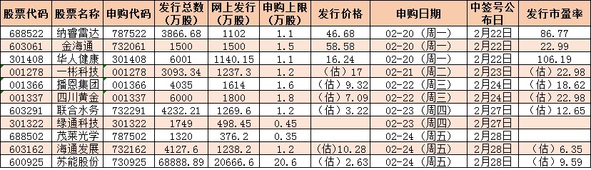 根據發行安排,下周(2月20日-24日)有11只新股發行。其中,滬市主板有4只,深市主板有3只,科創板和創業板各有2只。