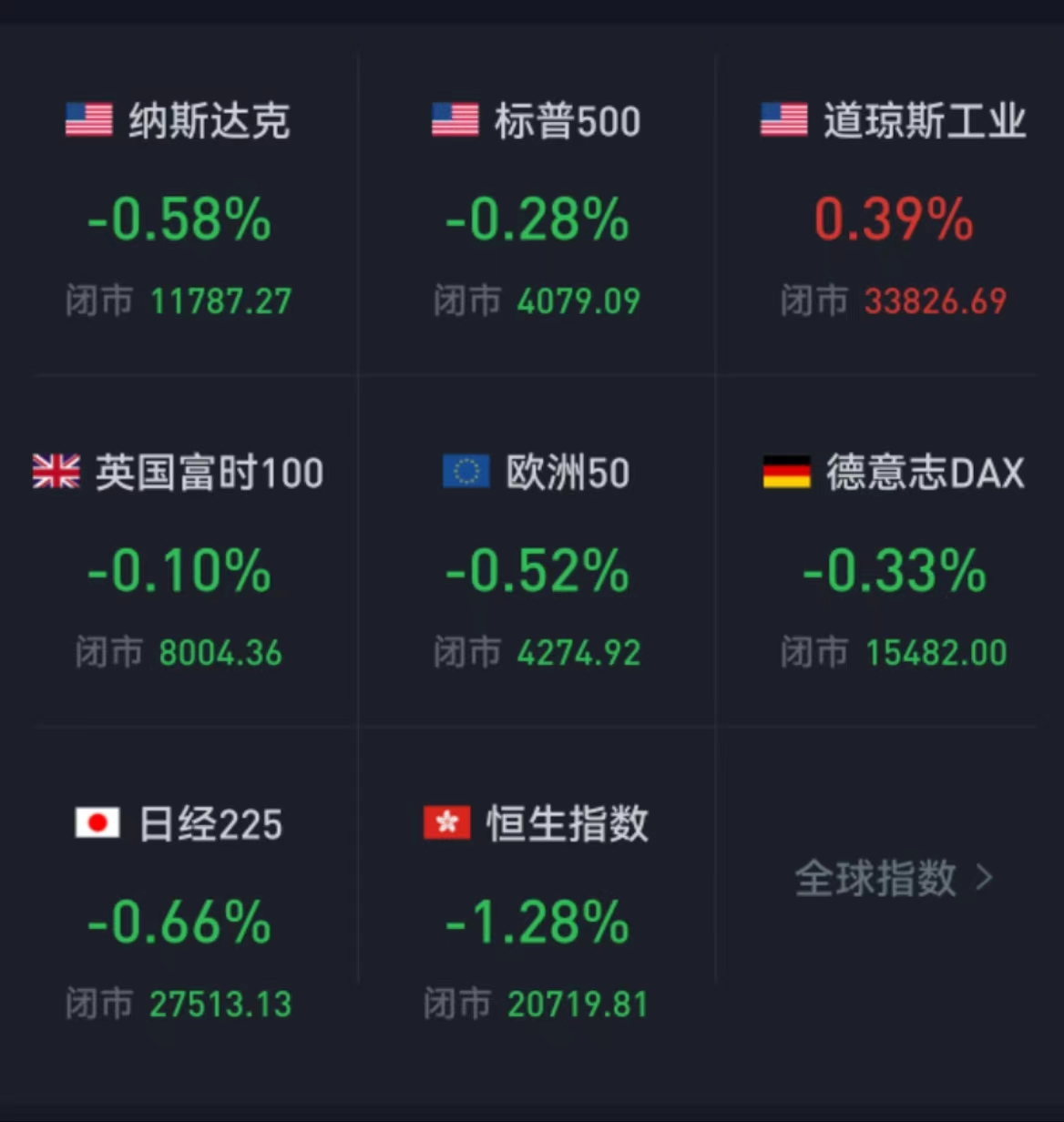 周五,美國三大股指收盤漲跌不一,道指漲0.39%報33826.69點,標普500指數跌0.28%報4079.09點,納指跌0.58%報11787.27點。本周,道指跌0.13%,標普500指數跌0.28%,納指漲0.59%。