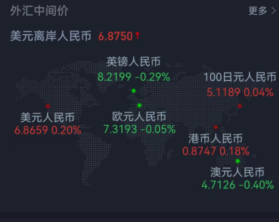 周五在岸人民幣兌美元16:30收盤報6.8818,較上一交易日跌302個基點,本周累跌819個基點。人民幣兌美元中間價報6.8659,調貶140個基點,本周累計調貶775個基點。在岸人民幣兌美元夜盤收報6.8661。