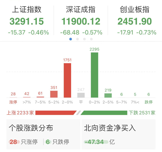周三(2月22日),A股三大股指低開震蕩,上證指數(shù)盤中一度重回3300點。截至收盤,上證指數(shù)跌幅達0.46%,報3291.15點;深證成指和創(chuàng)業(yè)板指跌幅分別為0.57%和0.73%,總體來看,兩市個股跌多漲少。對于后市,受訪業(yè)內(nèi)人士普遍認為,未來市場仍以震蕩上行為主。