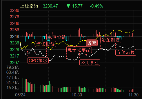 5月24日早盤,A股三大指數(shù)震蕩分化。截至上午11:30,上證指數(shù)跌0.49%,報3230.47點(diǎn);深證成指和創(chuàng)業(yè)板指漲幅分別為-0.08%和0.37%;滬深兩市成交額合計5041.3億元。總體來看,A股市場漲多跌少,漲跌停方面,有36只個股漲停,跌停股13只。