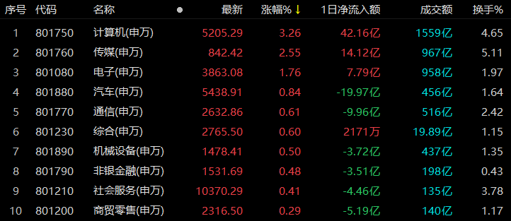 6月13日,行業漲多跌少,從31類申萬一級行業看,有16類行業上漲,占比51.61%,計算機行業漲幅居首,達3.26%,此外,傳媒和電子行業漲幅也均超1%。下跌方面,煤炭居首,跌幅達1.00%。