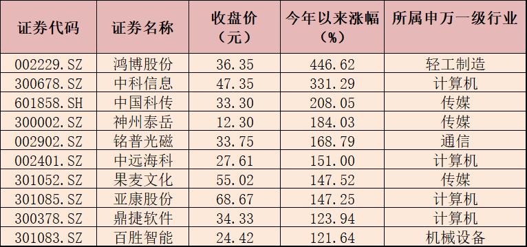 表:今年以來(lái)漲幅居前十的數(shù)字經(jīng)濟(jì)概念股一覽