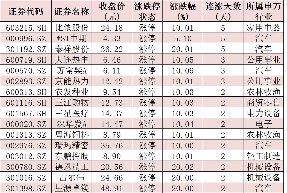 表:連續(xù)上漲2日且今日收盤(pán)漲停個(gè)股情況: