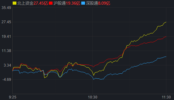 從資金面來(lái)看,7月11日上午,北上資金凈買入金額達(dá)27.45億元,其中,滬股通凈買入19.36億元,深股通凈買入8.09億元。