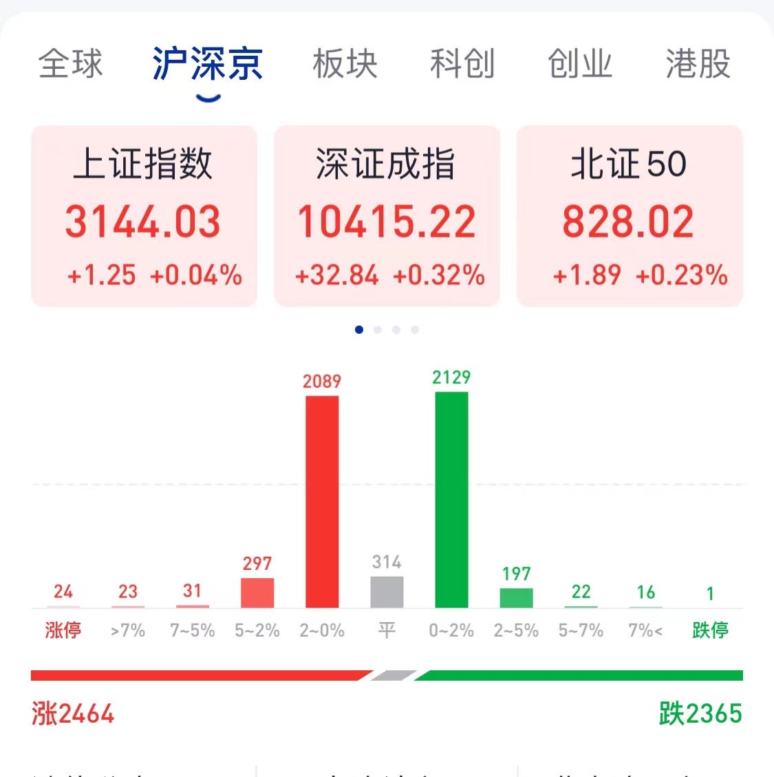 周二(9月12日),A股三大股指震蕩,漲跌互現。截至上午收盤,上證指數漲0.04%,報3144.03點;深證成指漲0.32%,報10415.22;創業板指跌0.10%;滬深兩市合計成交額4492.47億元,總體來看,兩市上漲個股略多于下跌個股,超2400只個股上漲。