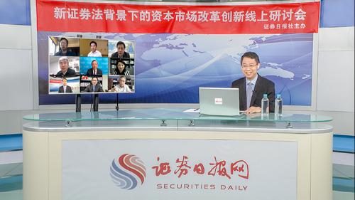 證券日報社執行副總編輯董少鵬主持研討會。會議以視頻方式舉行,證券日報社演播大廳設置了主會場。