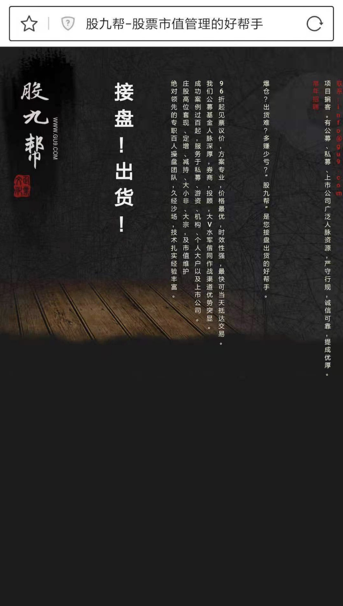 “盤后票網站有了影響力之后,吳承澤成立了股九幫項目,專門收取傭金幫別人出貨。吳承澤前一天在盤后票網站上掛出要出貨的股票,第二天莊家就可以出貨。可以選擇由吳承澤團隊來操作賬戶,也可以莊家自己操作賬戶。”陳偉杰進一步解釋道。