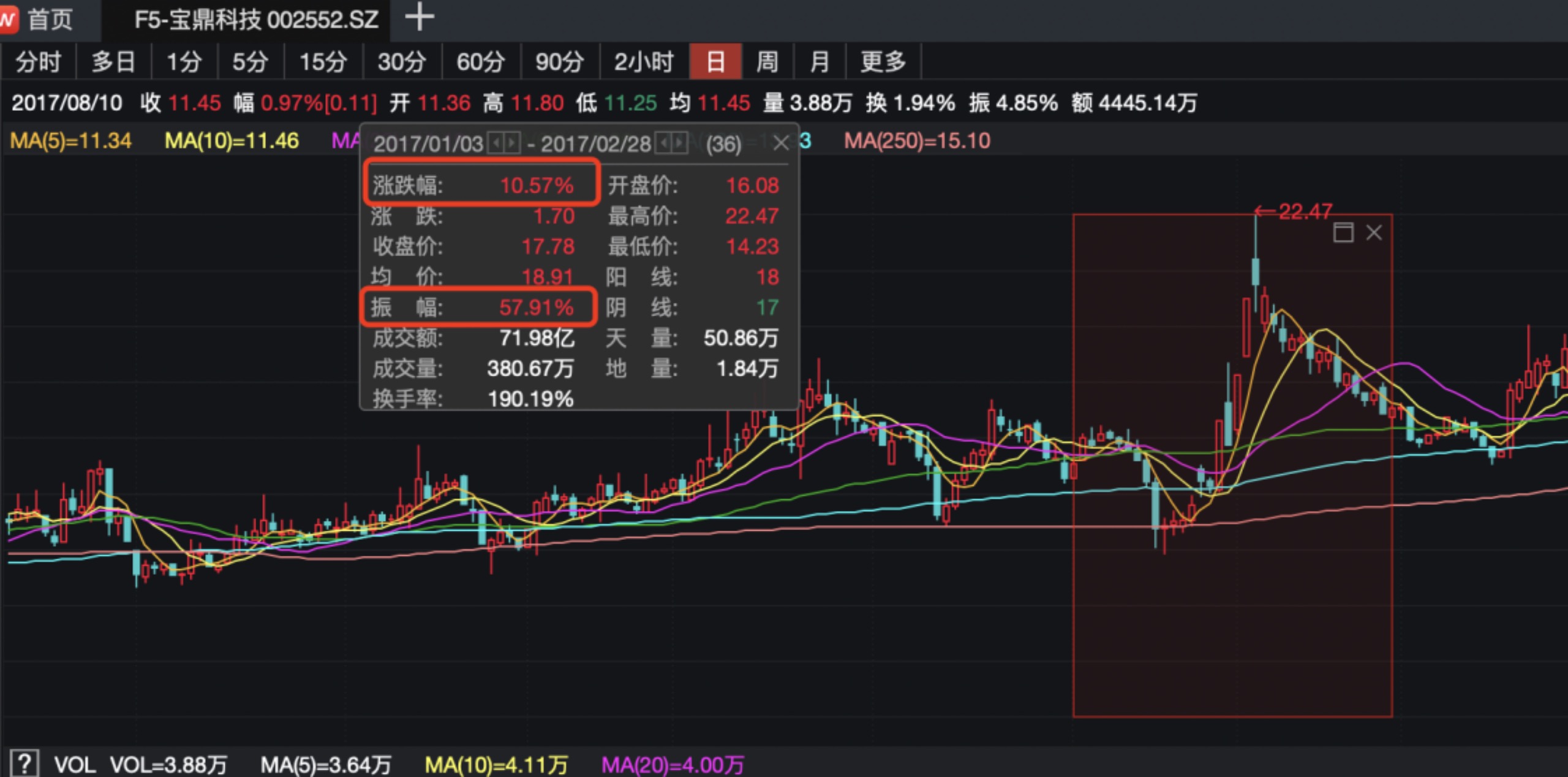 圖為2017年1月份至2月份,吳承澤團伙連續交易“寶鼎科技”時該股走勢