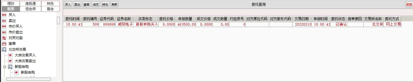 “通過(guò)參與北交所打新,我已獲利7063元。2月10日上午10時(shí),我已頂格申購(gòu)463500股威貿(mào)電子,繳付申購(gòu)資金417.15萬(wàn)元,希望能中簽并獲得理想收益。”入市13年的北京市投資者林先生興奮地告訴《證券日?qǐng)?bào)》記者,2022年北交所上市的注冊(cè)制維度的兩只股票他都中簽了,且收益可觀。