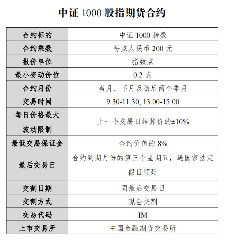 據記者了解,中證1000股指期貨合約乘數為每點人民幣200元,中證1000股指期權合約乘數為每點人民幣100元,其他主要條款分別與已上市的股指期貨、股指期權產品基本保持一致。