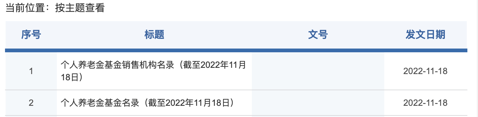 11月18日,證監(jiān)會發(fā)布個人養(yǎng)老金基金名錄和個人養(yǎng)老金基金銷售機構(gòu)名錄。個人養(yǎng)老金基金包含129只養(yǎng)老目標基金,個人養(yǎng)老金基金銷售機構(gòu)共37家。
