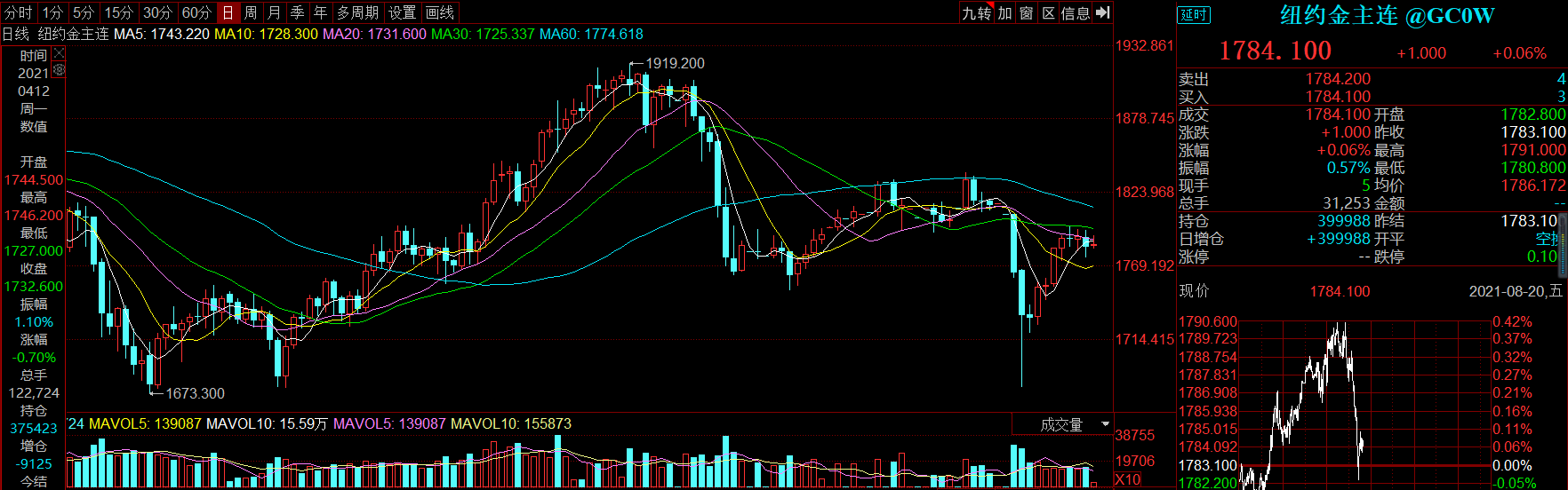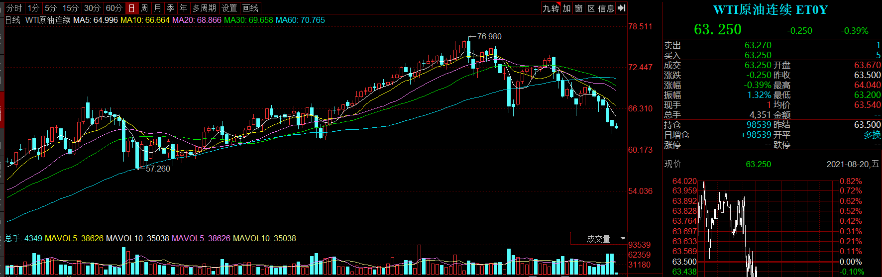 圖為:截至北京時間8月20日17:30部分大宗商品價格走勢圖