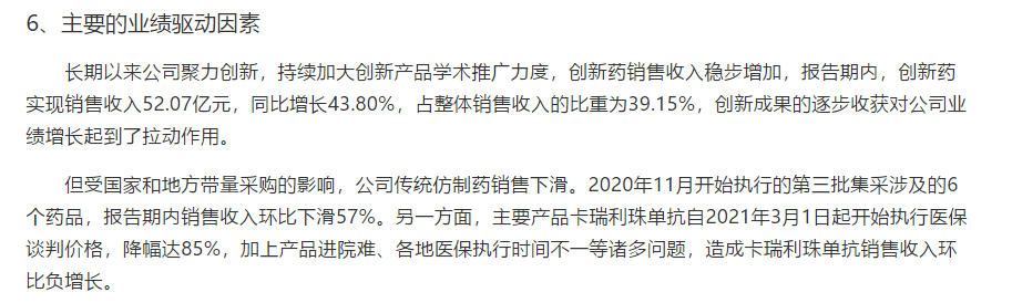 8月19日晚間,恒瑞醫藥發布2021年上半年業績報告,上半年實現歸屬于上市公司股東的凈利潤為26.68億元,同比增長0.21%,增速創下近年來最低紀錄。對于增速下滑的原因,恒瑞醫藥也在半年報中做出解釋。