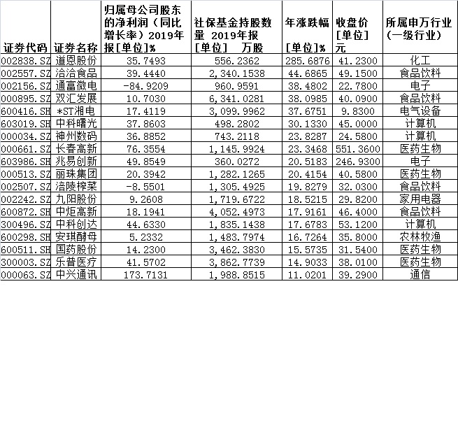 數據是最好的佐證。統計發現,在社保基金持有的200家公司中,2019年凈利潤實現同比增長的公司達153家,占比為76.5%。