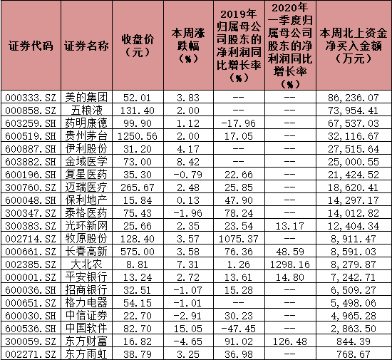 進(jìn)一步梳理發(fā)現(xiàn),截至4月26日,北上資金本周凈買入的21只活躍股中,有16家公司已披露2019年年報(bào),其中,14家公司2019年凈利潤實(shí)現(xiàn)同比增長,牧原股份2019年凈利潤同比增幅最高,達(dá)到1075.37%。此外,5家公司披露2020年一季報(bào)業(yè)績均實(shí)現(xiàn)凈利潤同比增長,大北農(nóng)一季度凈利潤同比增長高達(dá)1298.16%,緊隨其后的東方財(cái)富一季度凈利潤也實(shí)現(xiàn)同比翻番,達(dá)到126.48%。