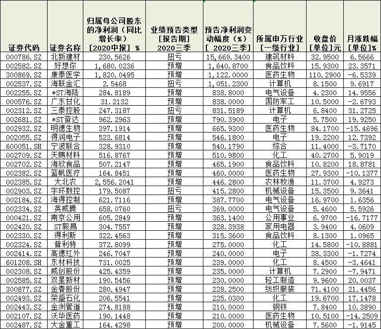 在上市公司密集披露2020年中報業(yè)績之際,部分上市公司率先發(fā)布出的三季報業(yè)績預告受到各方關注。