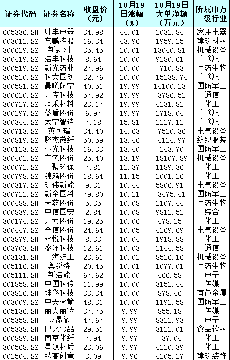 經歷國慶節后的快速上漲,A股暫時陷入盤整之中。10月19日,A股高開低走,在沖擊上方整數關口的時候,遭遇較多拋壓盤,量能始終制約著行情的延伸。截至收盤,上證指數報3312.67點,跌幅為0.71%,深證成指報13421.19點,跌幅為0.82%,兩市成交額為7391億元,較前一交易日有所增加。