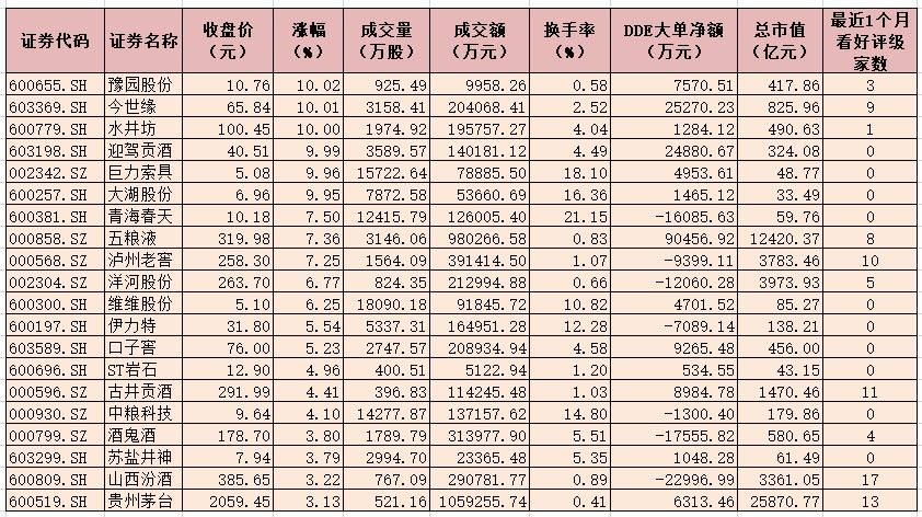 近期機構也紛紛看好白酒概念股,最近一個月內,有15只白酒概念股獲機構給予“買入”或“增持”等看好評級,其中,山西汾酒獲得17家機構看好評級,看好評級家數最多,貴州茅臺、古井貢酒、瀘州老窖等3只個股均獲得10家及以上機構看好評級。