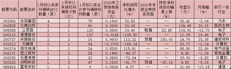 表:1月份以來(lái)獲QFII密集調(diào)研的公司一覽