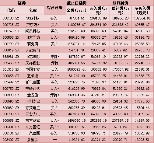 七、1月18日融資凈買入股TOP20
