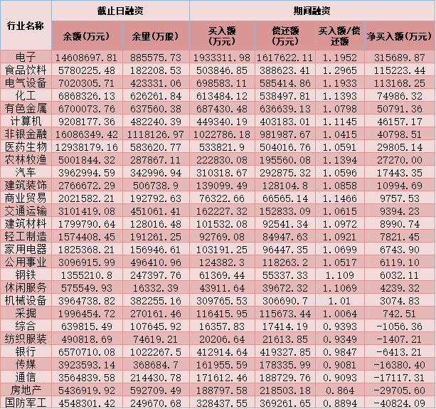 六、截至1月18日申萬一級行業(yè)兩融交易情況