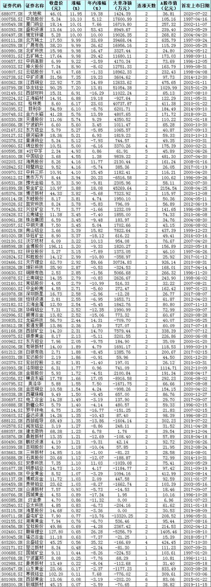 表:1月21日實現(xiàn)上漲的有色金屬股一覽