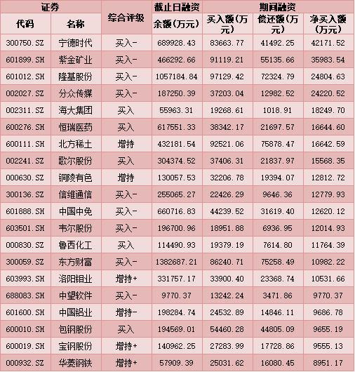 七、3月11日融資凈買入股TOP20