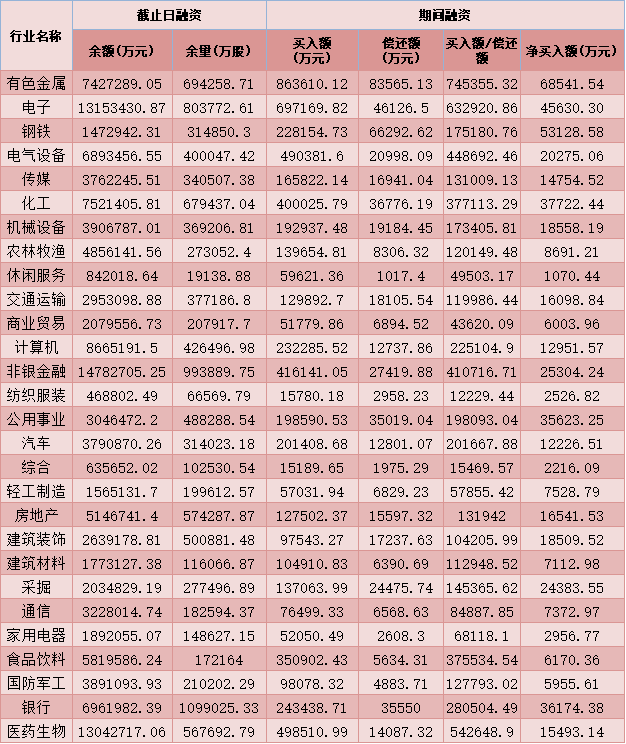 六、3月11日申萬一級行業兩融交易情況