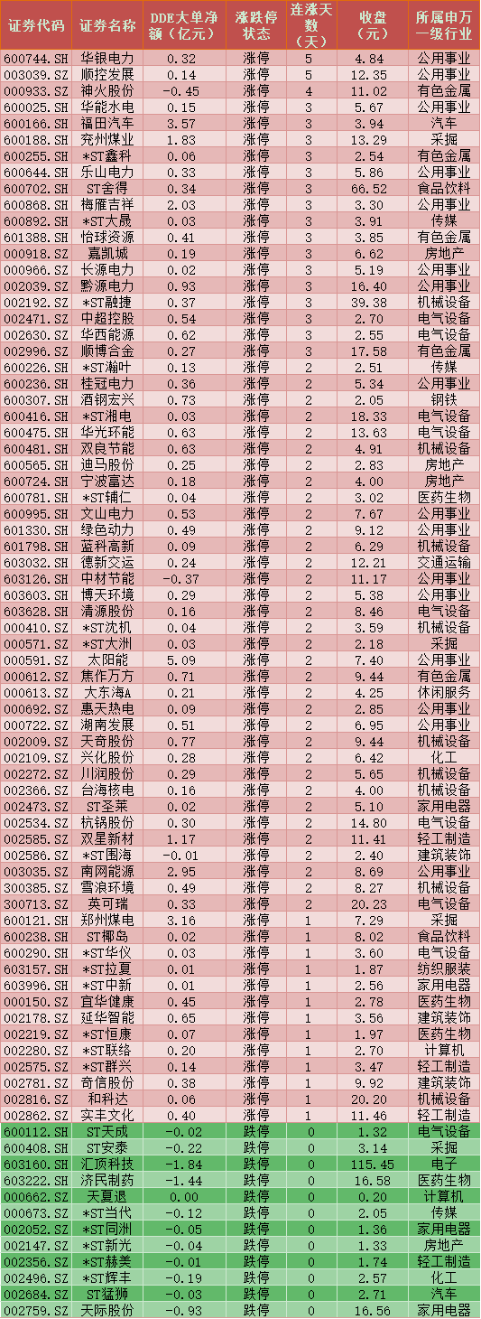 一、周五(3月12日)DDE大單資金凈買入TOP20