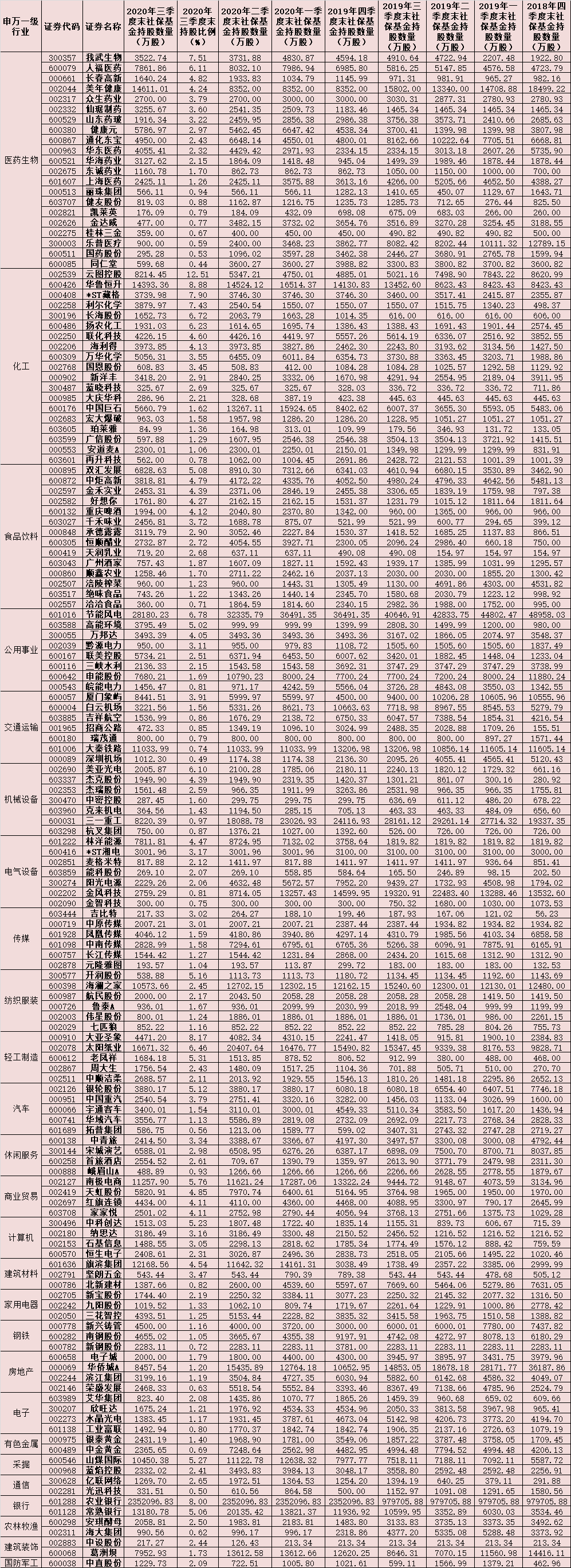 表:社保基金連續(xù)8個季度持倉的個股一覽