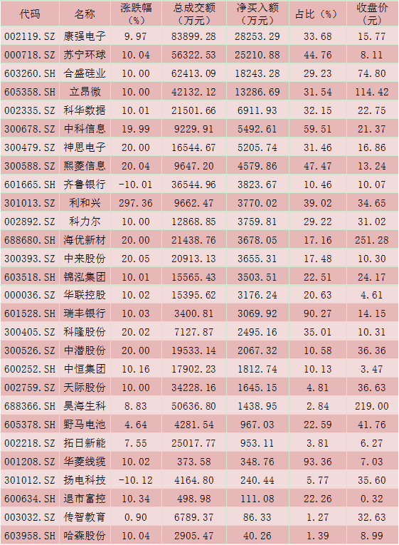 以下是《證券日報》記者對市場資金、北上資金、龍虎榜、兩融等主要資金動態進行的梳理,供投資者參考。