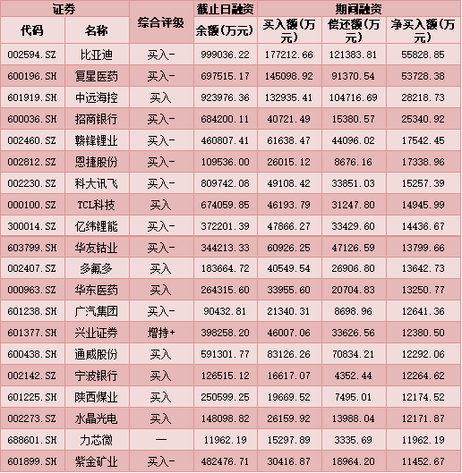 七、6月28日融資凈買入股TOP20